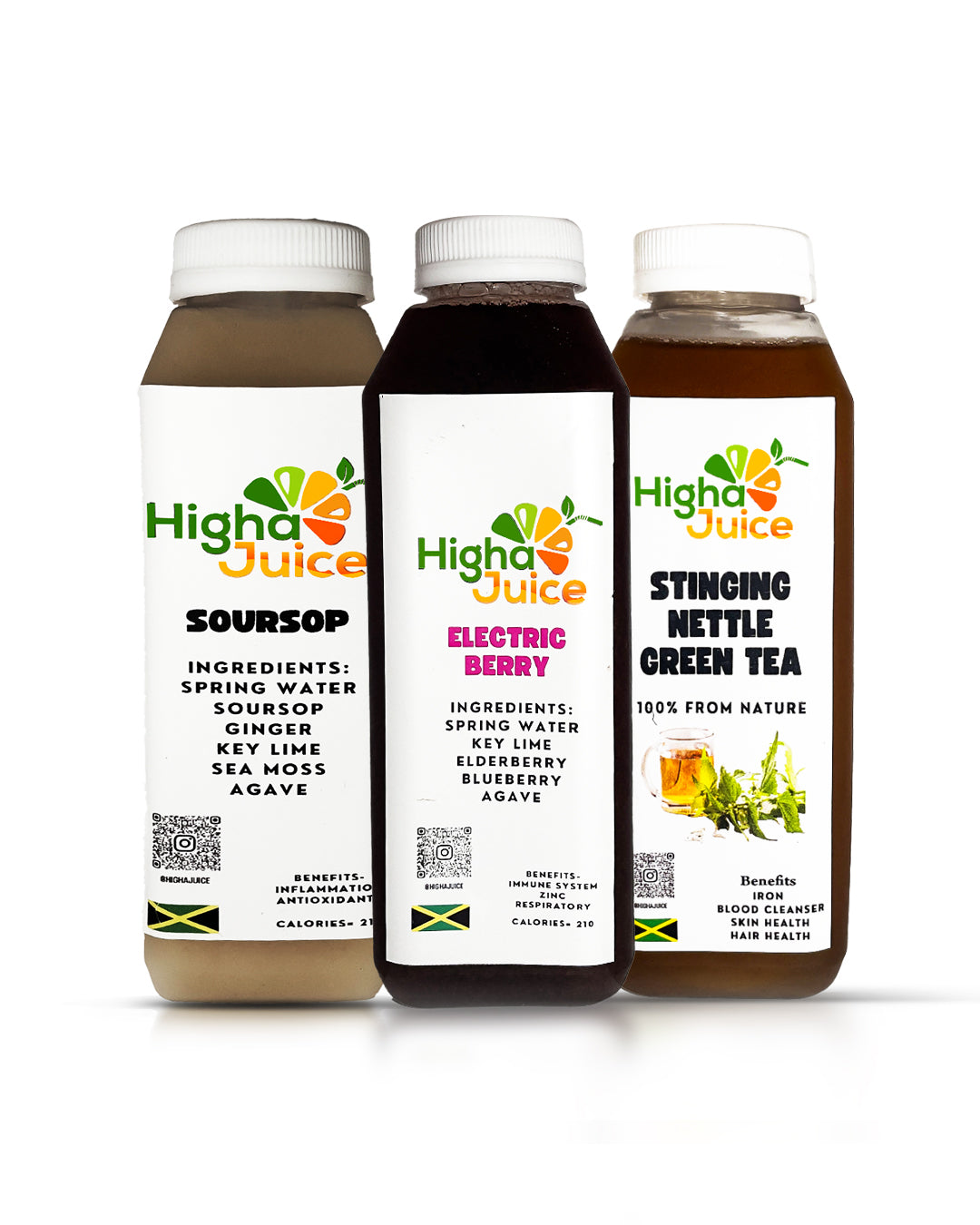 Combination 3 juice- soursop juice, electric berry, and stinging nettle green tea